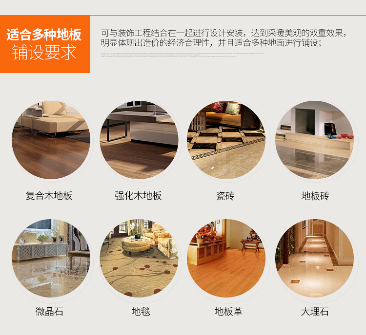 注意,电加热装置的厚度。在铺设前,地面的厚度影响电热膜采暖的效果。地面厚度过小,就会出现温度过高,地面厚度太大时会影响采暖效果。